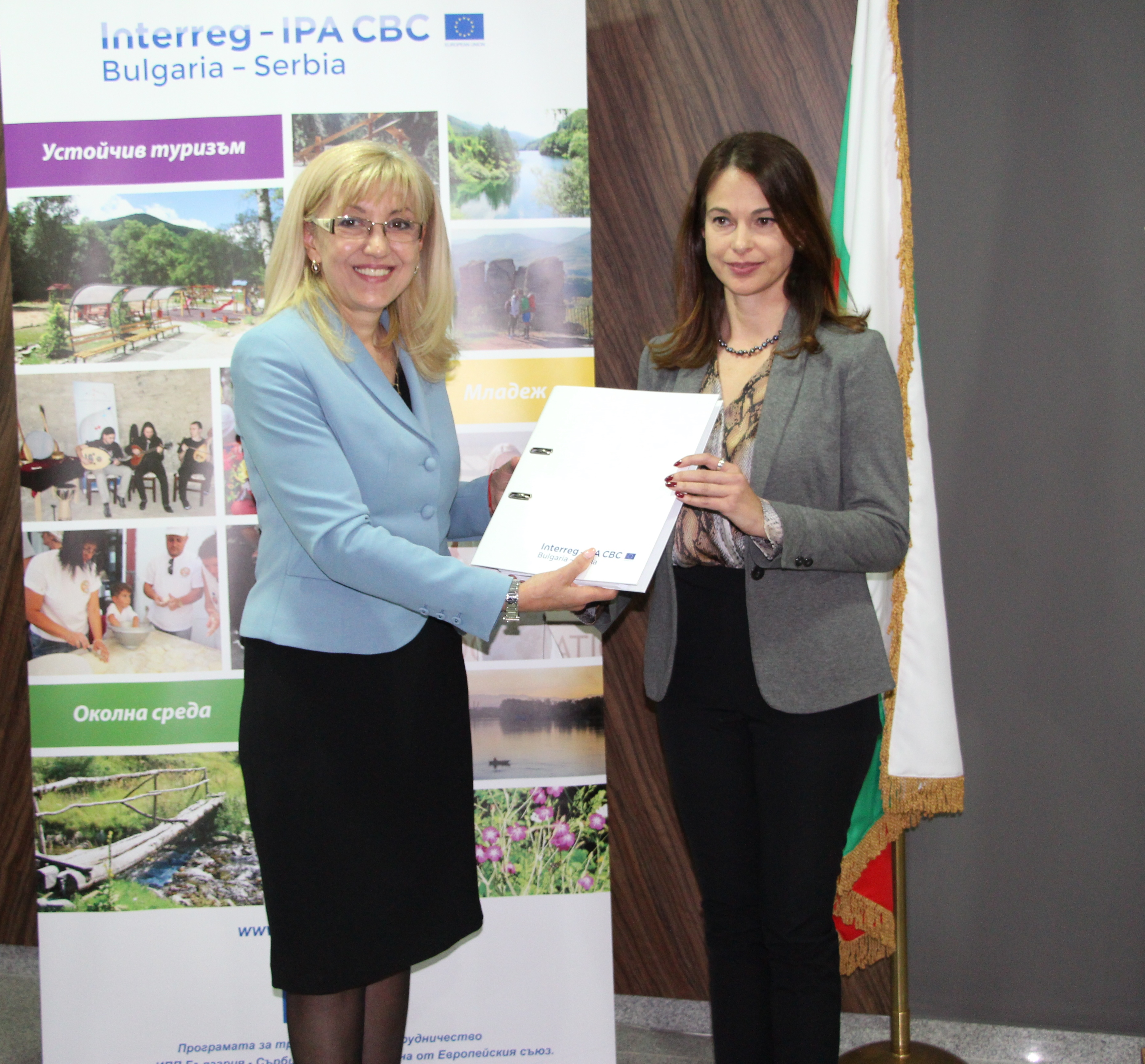 Днес в сградата на МРРБ министърът на регионалното развитие и благоустройството Петя Аврамова и министърът за европейска интеграция на Република Сърбия Ядранка Йоксимович връчиха 20 от договорите на бенефициентите на субсидията.