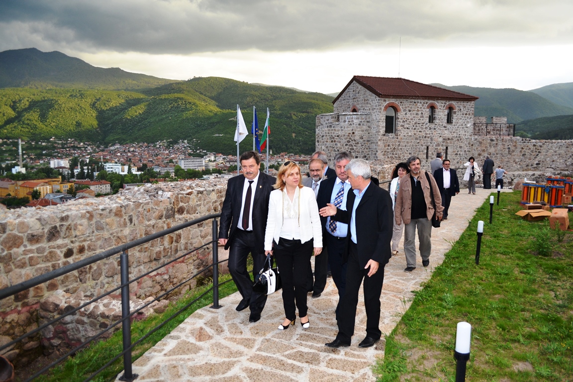 Десислава Терзиева разгледа реставрираните крепостни стени, наблюдателната южна кула, превърната в музей, и исторически артефакти и даде висока оценка на ръководителите на проекта, археолозите и архитектите.