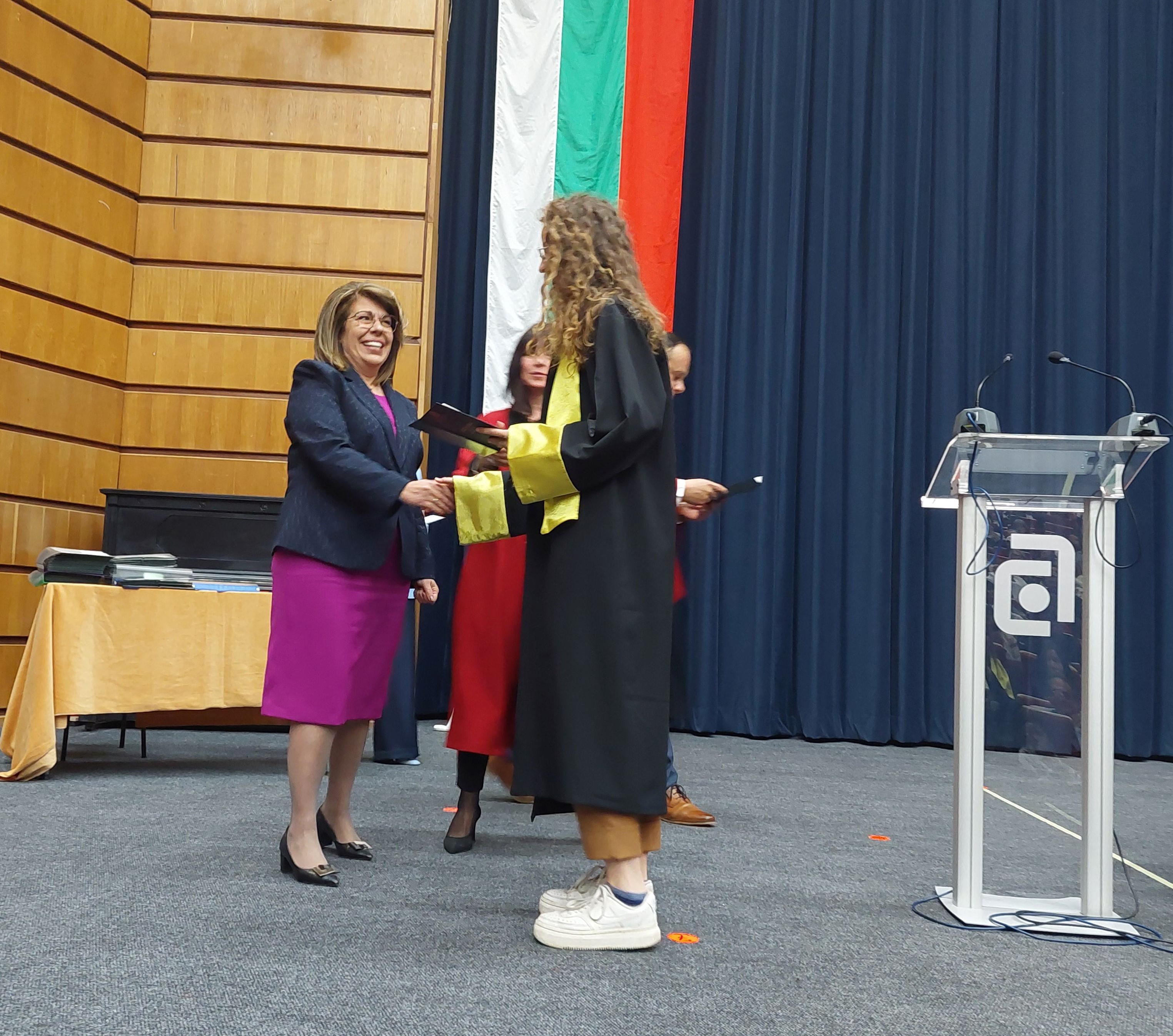 Министър Виолета Коритарова поздрави академичното ръководство за всекидневните усилия, благодарение на които младите завършват успешно своето обучение и за стремежа на преподавателите непрестанно да издигат престижа и авторитета на учебното заведение.