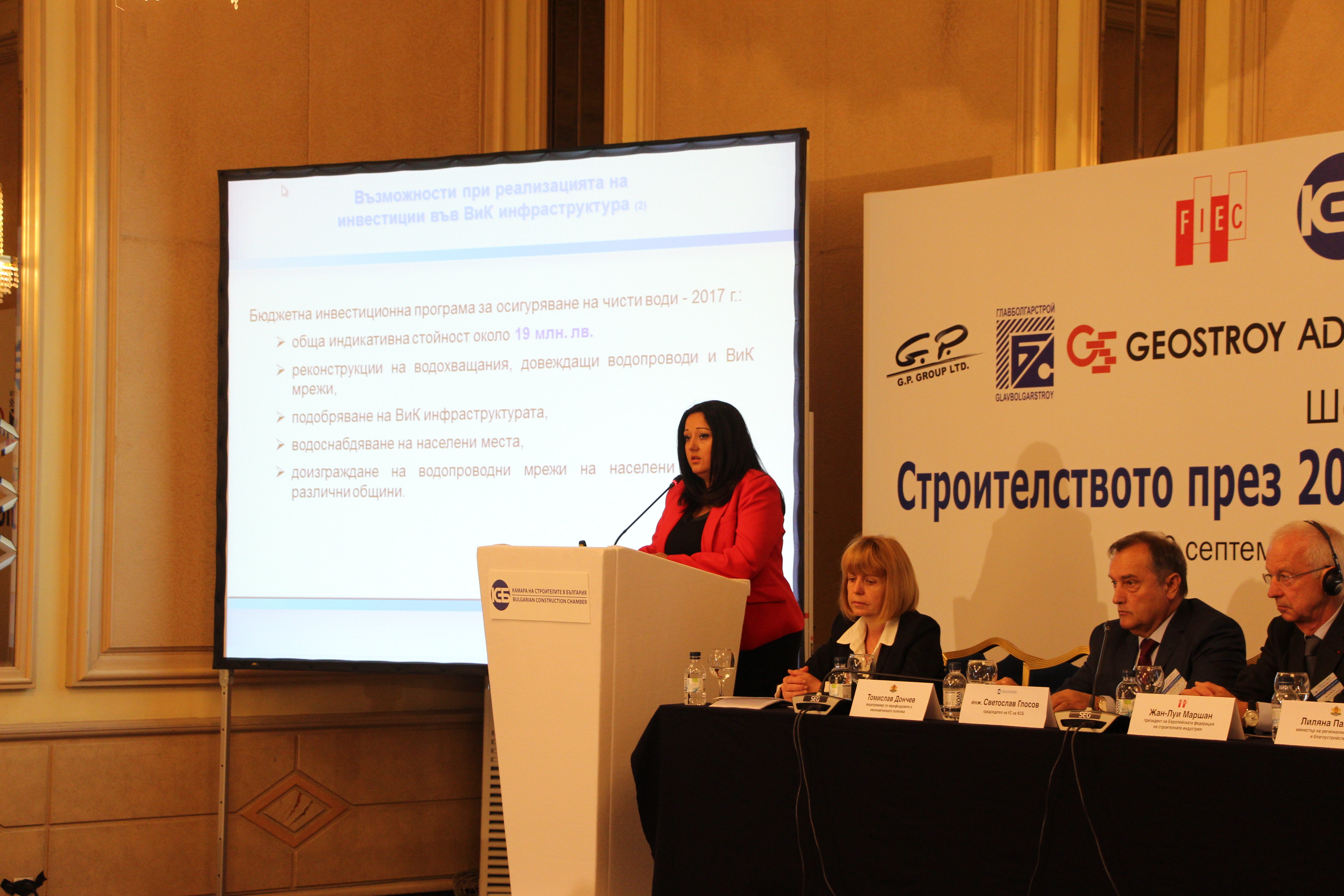 Пред участниците в него тя посочи, че 2016-та година не е толкова силна за строителния бранш като миналата, през която приключи предишния програмен период и всички програми и проекти трябваше да бъдат завършени, заради което имаше много работа за строителите. Министърът обърна внимание, че през 2016 г., през която реално започва изпълнението на проектите от новия програмен период, темпото е по-бавно и обемът на поръчките е по-малък, но годината не е нулева. Възможност за работа осигурява един от научените уроци – за подготовката на предефинирани проекти с добра техническа готовност, а глътка въздух за малкия бизнес дава Националната програма за енергийна ефективност на многофамилни жилищни сгради.