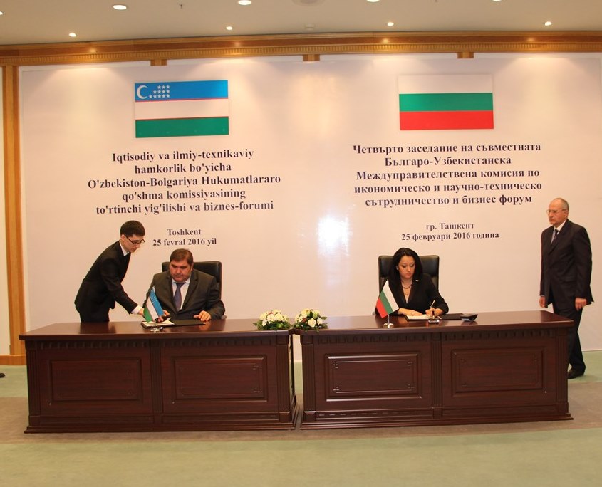 Междуправителствената българо-узбекска комисия приключи с подписването на заключителен протокол. В него двете държави залагат увеличаване на стокообмена, засилване на инвестиционното сътрудничество, възможностите за участието на български фирми в строителството на транспортната инфраструктура на Узбекистан, информационните и комуникационни технологии, енергийната ефективност, развитието на туризма, селското стопанство и др.