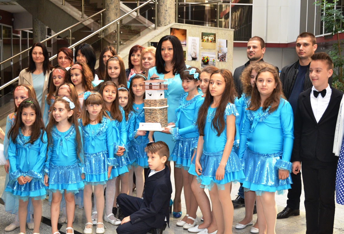 Малчуганите връчиха на министър Павлова символичен подарък от Общински детски комплекс - собственоръчно изработен макет на часовникова кула, която е лауреат на националния конкурс „ Архитектурните паметници на България в макети“.