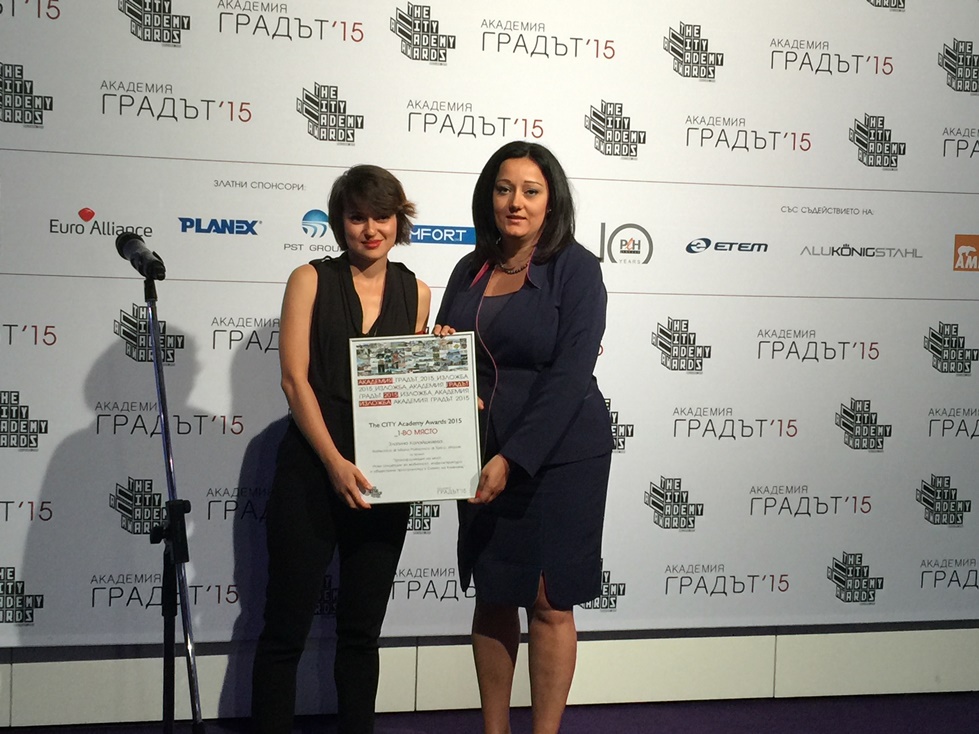 Събитието е част от традиционната „Академия ГРАДЪТ 2015“, която се провежда в София. Златина е магистър архитект от университета „Politecnico di Milano, Politecnico di Torino“, Италия и бакалавър архитект от Университета по архитектура, строителство и геодезия, София. В момента работи в „Architectural Studio Intern @ Arup Italia“, Милано, Италия. 15 от общо 88 проекта получиха отличие.