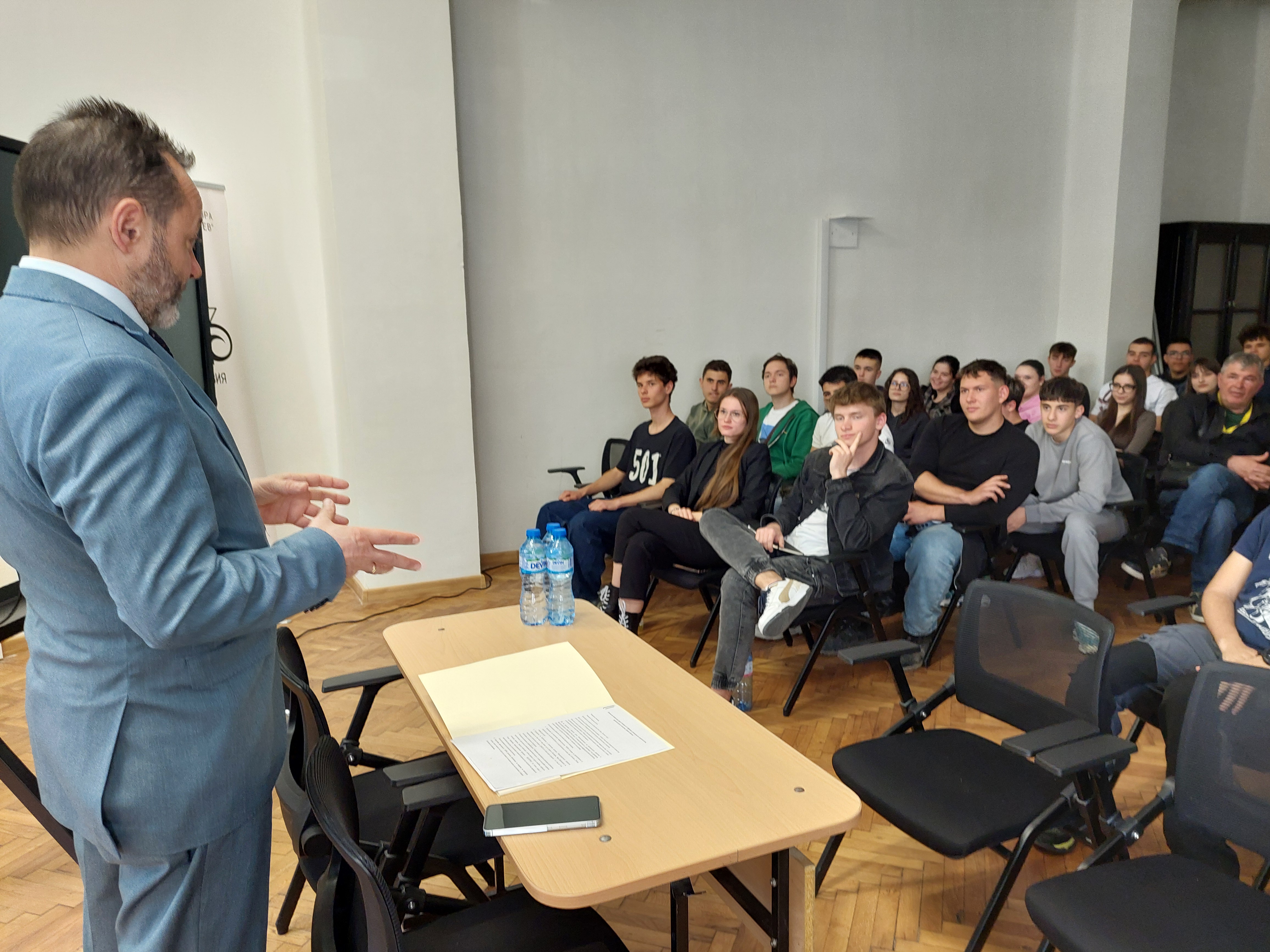 Пред учениците министърът разказа за проектите на МРРБ в областта на пътната инфраструктура, водоснабдяването и канализацията, жилищната политика и повишаването на енергийната ефективност на жилищните сгради, инвестиции от програми с европейско финансиране, които оказват влияние върху бита на хората. Запозна ги със строителния контрол, устройственото планиране, гражданската регистрация и нормативната уредба, която регламентира строителството.