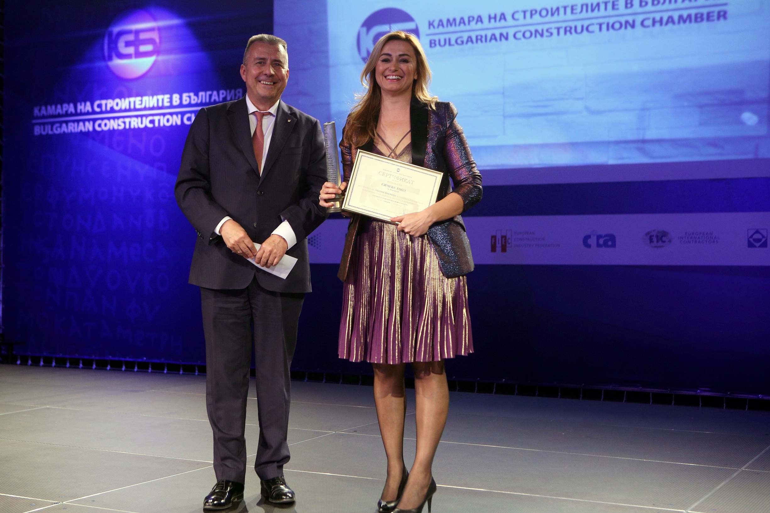 Заместник-министърът на регионалното развитие и благоустройството Валентин Йовев отличи „Симекс“ ЕООД в раздел „Средни строители“ при „Строежи от транспортната инфраструктура“. В същата категория председателят на Управителния съвет на Агенция „Пътна инфраструктура” Георги Терзийски връчи наградата за „Малки строители“ на „Автомагистрали София“ ЕООД.