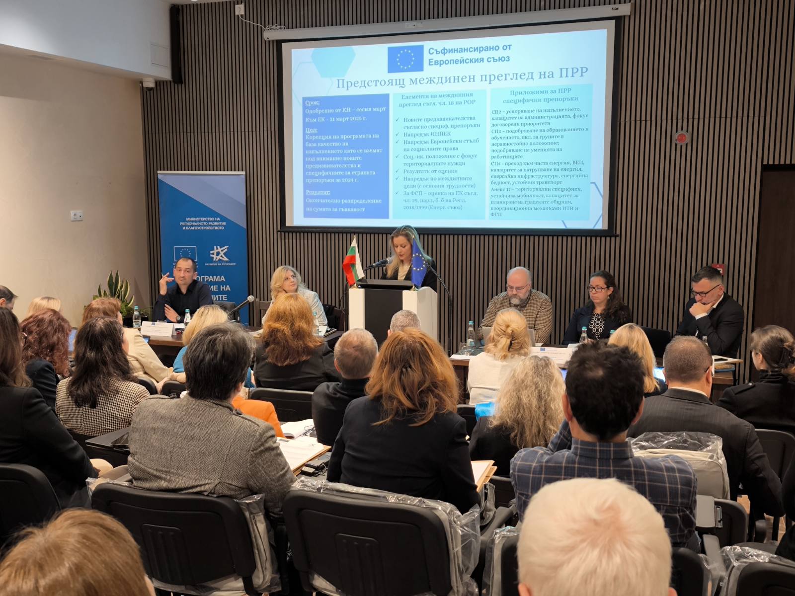 Станкова подчерта, че Програма „Развитие на регионите“ 2021-2027 г. се изпълнява в срок. Тя припомни, че преди да започне същинското финансиране на проектите е трябвало да се изпълнят редица стъпки, които следват спецификата на приоритетите. Към момента по програмата са договорени 622,4 млн. лв. (10% от бюджета на ПРР), разплатени са 194,3 млн. лв. или 3% от бюджета на програмата.