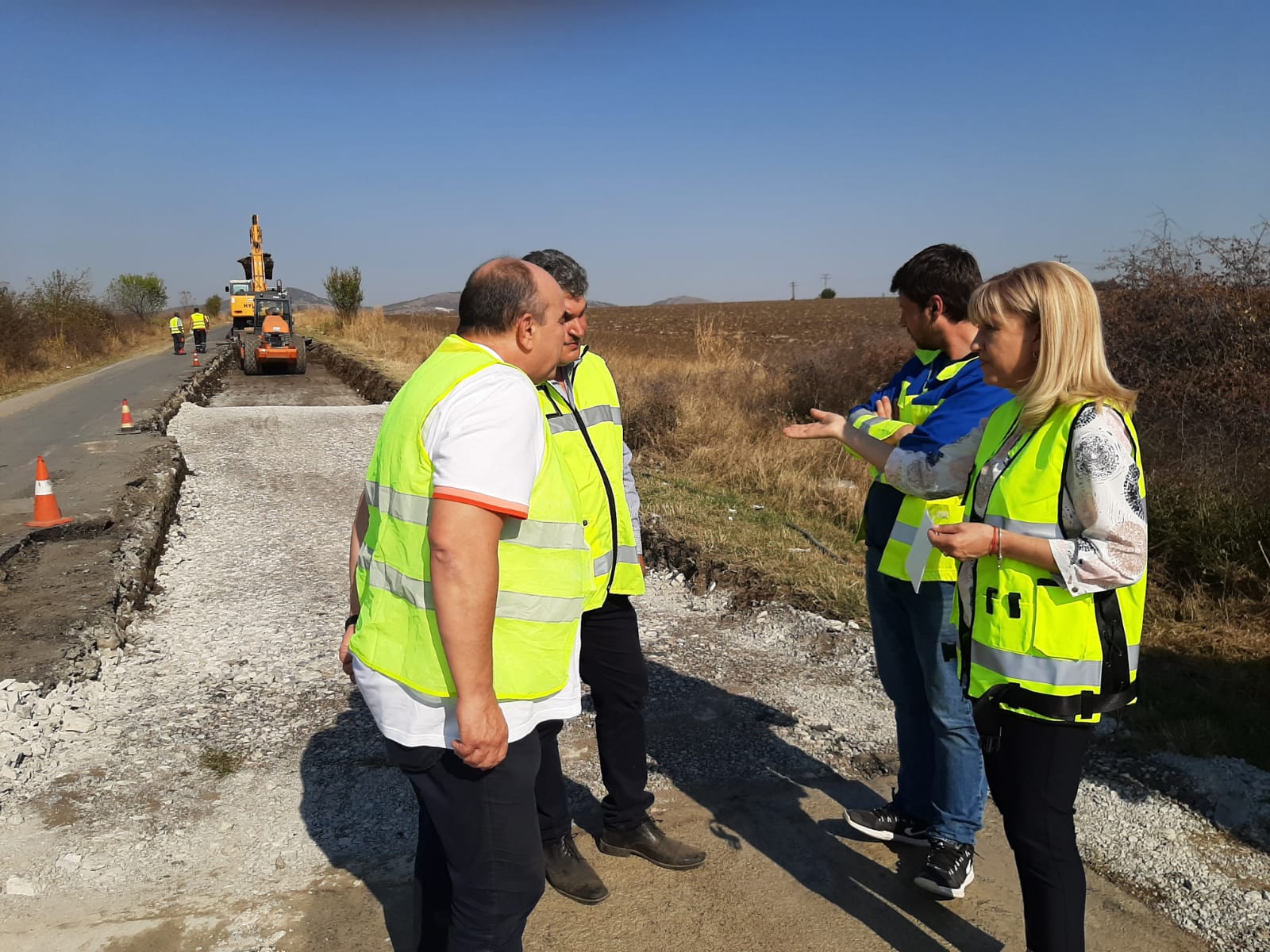 Временно, поради повреда на основна строителна машина работата е била спряна, но повредата е отстранена и ремонтните дейности на пътя продължават.