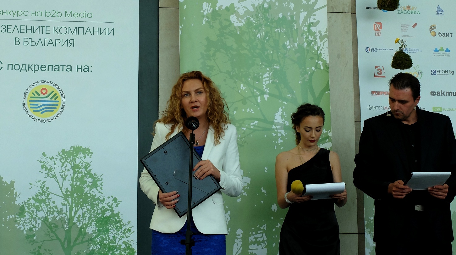 За МРРБ опазването на околната среда и водите винаги е било един от основните приоритети, заяви зам.-министърът на регионалното развитие и благоустройството Деница Николова на церемонията по награждаване на победителите в конкурса „Най-зелените компании на България“ за 2015 година, организиран от B2B media.