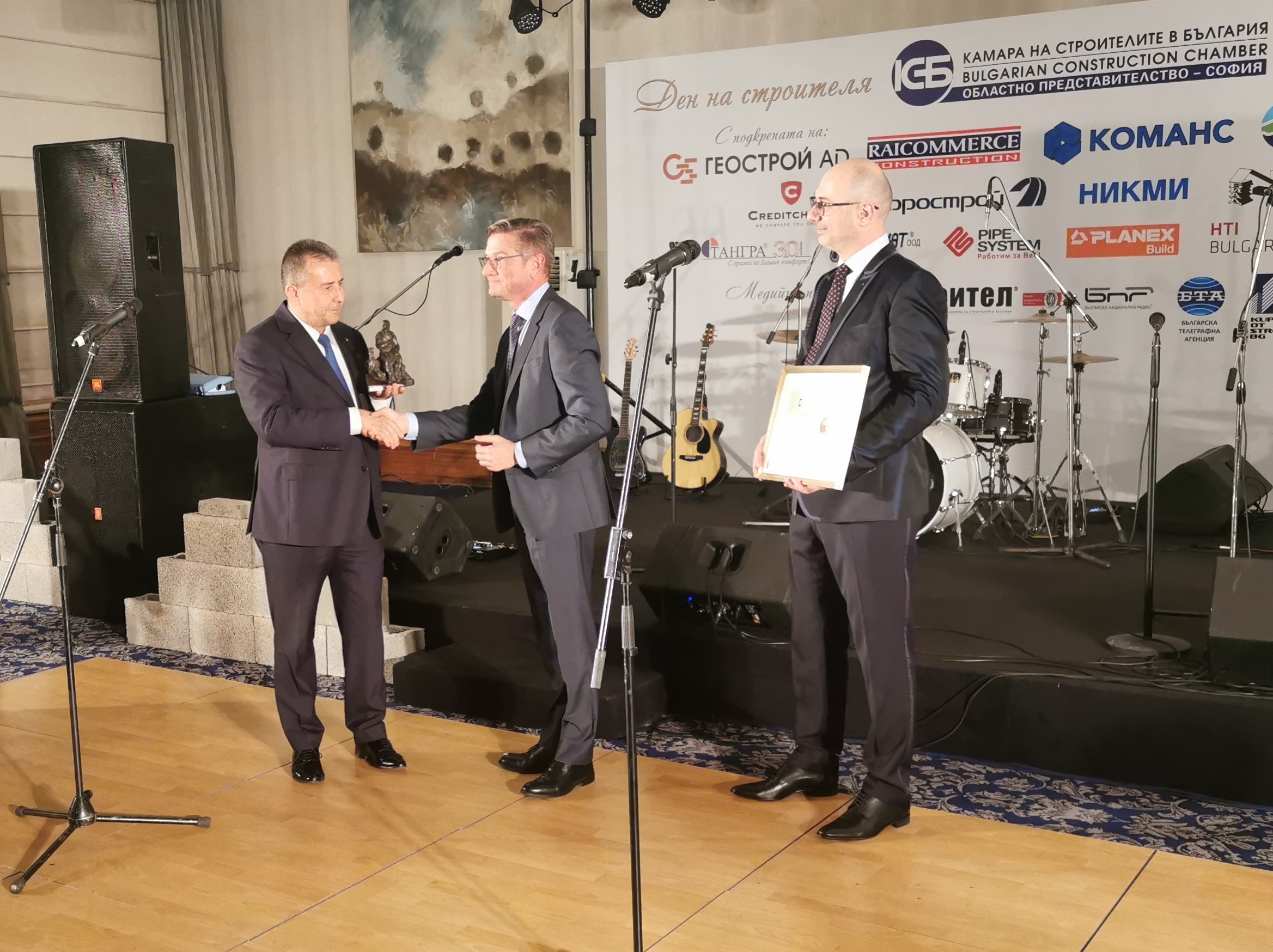 По време на церемонията зам.-министър Йовев награди победителят в конкурса за най-добър строител за територията на област София „Геострой“ АД, организиран от областното представителство.