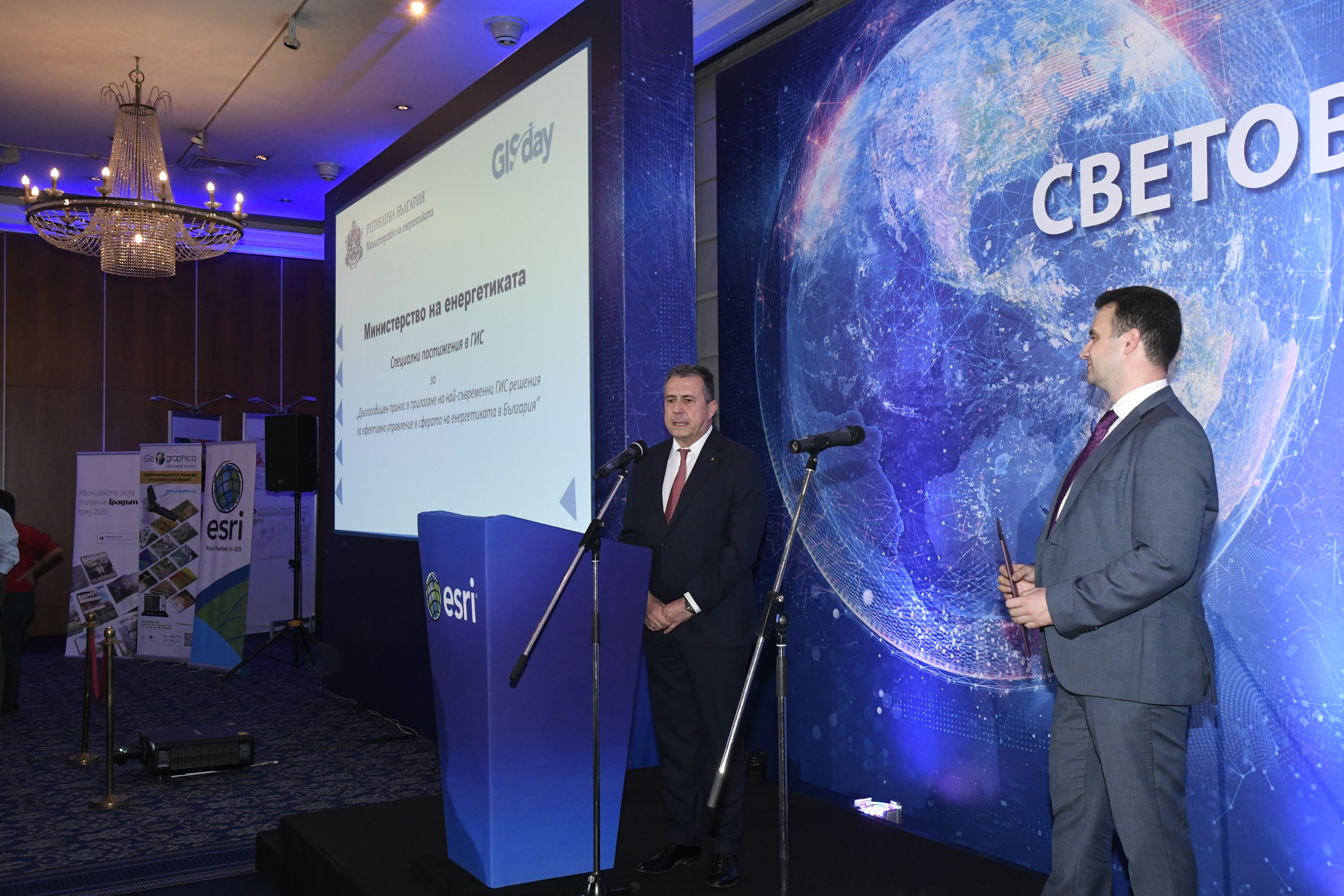 Заместник-министърът на регионалното развитие и благоустройството Валентин Йовев връчи награда за „Дългогодишен принос в използване на най-съвременни ГИС решения за ефективно управление в сферата на енергетиката в България“. Призът получи Министерството на енергетиката, в категория „Държавна администрация“, на церемония, организирана от ЕСРИ България.